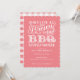 Este convite para chá de casais divertidos apresenta um fundo de xadrez cor-de-rosa para definir o palco para o chá de "copas e CHURRASCOS". Seria excelente para um chá de fraldas ou um chá de panela!