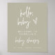 Este moderno sinal de boas-vindas do chá de fraldas apresenta uma fonte escura, escrita à mão, com uma combinação de cor branca e verde-sábio. Seu design é o perfeito chá de fraldas para a mãe moderna. Edite facilmente a cor para corresponder ao seu tema.