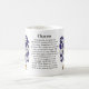 Brasão da família de Chacon (crista) que inclui a história e o significado do nome de Chacon em uma caneca cerâmica do café/chá. Cada caneca tem duas imagens de sua brasão (uma em cada lado) e a história e o significado do nome de Chacon (no meio). A caneca cerâmica é cofre forte da microonda e da máquina de lavar louça.  Você pode agora orgulhosa indicar sua herança ao sorver sua bebida, ou use-a como uma parte de conversação. Igualmente fazem grandes presentes para amigos e família.  Esta imagem pode ser usada em todos os outros produtos da caneca e da caneca de cerveja de Zazzle.