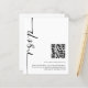 Uma alternativa de orçamento com custo-benefício em um tamanho menor 4,5 x 5,6” semi-brilho 110lbs de peso, que é de espessura semelhante a um cartão postal (no entanto, não é adequado para uso como cartão postal). POR FAVOR, OBSERVE que há UM por folha. Orçamento Caligrafia Código QR Casamento RSVP está em um estilo manuscrito girado e à esquerda, com sua mensagem à direita. Personalize facilmente o restante do texto para seus próprios detalhes e substitua o código QR de amostra pelo seu. Você pode criar códigos QR gratuitamente online. Basta procurar por “criador de código QR” e muitas opções surgirão para criar gratuitamente.