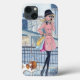 Ilustração de garota da moda fofa ligando e fazendo compras em Nova York.