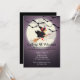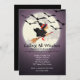 Comece sua festa de Halloween com nossa linda festa de Halloween chamando todas as bruxas de convite de festas com uma bruxa voando sobre sua vassoura com uma lua e morcegos pretos em um fundo roxo. Visite nosso compro em www.celebrateitholidays.com para uma grande seleção de itens de férias. Personalize com suas informações pessoais e você está pronto para ir.