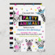 Chamando todos os animais de festa! Aproveite este convite de aniversário colorido de festas com um leão, zebra, elefante e girafa! É a maneira perfeita de convidar convidados para a festa de aniversário temida do animal da festa do seu filho. Este é um convite divertido, neon e preto chamado selvagem!