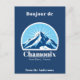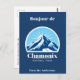 Este lindo cartão postal com um logotipo de Chamonix Mont Blanc França apresenta uma montanha azul deslumbrante com um fundo ensolarado. É o presente perfeito para turistas em férias de esqui!