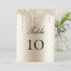 O champanhe pingava brilho nestes cartões de números da mesa de casamento bonito. Consulte nossos produtos correspondentes em nossa coleção de casamento do Champagne Driping Glitter: https://www.zazzle.com/collections/champagne_dripping_glitter_wedding_invitations-119694976165679238