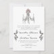 Celebrate your special day with this elegant wedding invitation featuring a whimsical hand-drawn chandelier adorned with a delicate blush pink bow. Romantic floral accents frame the text, adding a touch of natural beauty to this formal announcement. The classic typography ensures your wedding details are clearly conveyed, making it perfect for a sophisticated affair. This invitation sets a charming and intimate tone for your upcoming wedding celebration, inviting loved ones to share in your joy.
