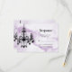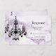 Um candelabro de cristal rico em um fundo de mármore roxo ilustrado acentua esse RSVP, fazer perfeito para uma festa elegante, moderna ou moderna. Este é o RSVP coordenador do Convite Chandelier Bat Mitzvah sobre o Mármore Roxo.