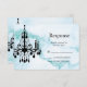 Um candelabro de cristal rico em um fundo de mármore de turquesa ilustrado acentua esse RSVP, fazer perfeito para um partido elegante, moderno ou moderno. Este é o RSVP coordenador do Convite Chandelier Bat Mitzvah sobre Turquoise Marble.