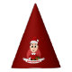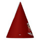 Festa que, com uma ilustração de um sorridente menino feliz de cabelos negros, ele está vestindo fantasia de Papai Noel vermelho e branco e segurando um presente; com um modelo de texto editável para seu nome ou mensagem, design de Natal com fundo vermelho