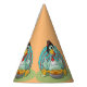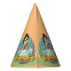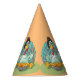 Um desenho animado de uma Turquia é mostrado comendo seu janto de Ação de Graças sobre esses adoráveis chapéus partidários