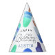 Projetados para combinar os nossos convites de aniversário de picolé-d'água, esses chapéus fofos de festas personalizadas apresentam uma borda de picolés de cor-de-água em verde e azul. "Happy Birthday [nome]" aparece no centro em caracteres brancos.