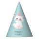 Aniversário do Dia Puro do Gato Celebra o Aniversário do seu pequeno aniversário com este tema de festa de aniversário de gatinho branco e giro. Design apresenta um gato branco e fluff vestindo um chapéu de festa. Ideal para todos os aficionados de gatos, todas as idades e perfeito para um tema de festa de aniversário de gatos ou animais de estimação. Completamente personalizável. Veja o papel de coordenação e presentes.