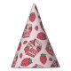 A Festa de aniversário de Padrão de Leite de Morango Cuta é perfeita para uma festa de aniversário doce com uma estética rosa! Este design com padrão apresenta uma caixa ilustrada de leite de morango juntamente com desenhos de morangos cor-de-rosa. É uma celebração divertida com esses chapéus de festas de papel!
