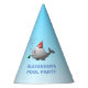 A baleia está pronta com um chapéu de festa para a festa de aniversário.