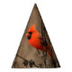 Pássaro vermelho incrível nos ramos de um morto ou árvore de queda com folhas marrons. O fundo faz o vermelho vivo das penas das aves se destacar e pop.