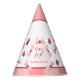 Complete your little girl's birthday outfit with our adorable Berry First Birthday Party Hat. This sweet accessory features a classic red gingham pattern, beautifully accented with a hand-painted watercolor strawberry and a dainty red coquette bow.