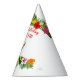 O chapéu de festa perfeito para a sua celebração tropical, este design apresenta um belo quadro floral com um papagaio no centro. Seu texto é exibido em fontes coloridas. Um design excelente para a festa de aniversário de uma criança, peça seus adesivos hoje! Papagaio: https://www.etsy.com/shop/YourArtMomDana Gráficos Florais por Design da Ponte Nacional, www.CountryBridgeDesign.etsy.com