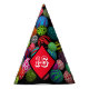 Chapéu de festa com bolas multiimpressão. A cor de fundo e o texto, etc., podem ser personalizados.
