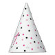 Coordene sua Festa de aniversário de 21 anos cor-de-rosa com esses chapéus de festas de papel, Bolinhas, cor-de-rosa e preto.