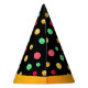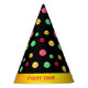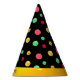 Bolinhas multicoloridas de tempo de festa no Chapéu preto de fundo. O Tempo de Festa pode ser personalizado.