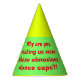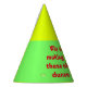 Características deste design parvas do chapéu do partido da piada a pergunta, "porque é você que faz nos vestir estes bonés de burro obnóxios?!"