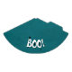 Design de texto para o Dia das Bruxas com decoração de gato, aranha, coruja e rede de aranha sobre fundo azul grunge.
