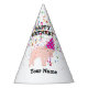 Uma bela ilustração de uma festa de porco e diversão! Porco vestindo um chapéu de festa e soprando buzina com confete chovendo nele. Que comecem as comemorações! Perfeito para quem adora ilustrações animais engraçadas. Chapéu de festa de aniversário ideal. Personalize a ocasião e o nome e torne-o seu.