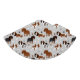 Corajoso Rei Cavalier Charles Spaniel com casacos pretos, castanhos e brancos com ossos de cão espalhados e padrões de pegadas.