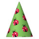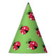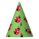 O chapéu do partido é mostrado em um design bonito do impressão dos joaninhas do verde limão e do vermelho.