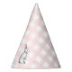 Estes chapéus de festa apresentam um design de gingham eterno e um coelho de coelho ilustrado manualmente. Para personalização mais avançada deste design, basta selecionar o botão "Personalizar" acima.