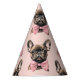 Desenho colorido de lápis de um brindle (preto e castanho) de um buldogue francês vestindo um arco rosa. Adorável!
