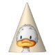 Bonito chapéu de festa com a cabeça de um pequeno pato. Perfeito para festas de aniversário ou chá de fraldas. Personalize o texto com sua própria mensagem. Ilustração de Patricia Alvarez.