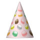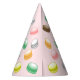 Um doce chapéu de festa de aniversário 16 com muitos macarões coloridos.