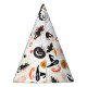Noite Selebration do Dia das Bruxas, carnaval, chapéu de papel na moda do partido - "trate ou engane" o chapéu MÁGICO do papel da noite do Dia das Bruxas - teste padrão do Dia das Bruxas da fantasia, abóbora do Dia das Bruxas, bastão, aranha, Web, casa, lua e céu. A ilustração mágica dos símbolos da noite do Dia das Bruxas com personaliza a opção da mudança do texto.