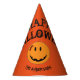 cara vestida para o halloween com um sorriso assustador de abóbora e cicatriz costurada na testa neste design de chapéu de papel amigável. A cor de fundo é opcional. Adicione seu próprio nome ou outro texto usando o modelo fornecido. Procure ID224 para ver outros produtos com este design.