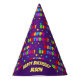 Perfeito para qualquer festa de aniversário, esta design apresenta um fundo de palavras multicoloridas 'Parabéns' e no pico está um semicírculo onde você pode adicionar suas próprias palavras ou mensagem e um nome. A cor de fundo do chapéu e do semicírculo pode ser alterada para uma cor de sua escolha. Um novo item para essas festas e comemorações comuns.