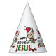 ►IMAGE: Charlie alegre comemora o aniversário do Jesus Cristo. Figura bonito da vara com o chapéu vermelho do Natal com lenço vermelho/verde. Esta imagem dos desenhos animados envia uma mensagem do elogio do Natal. ►COLORS: O Natal vermelho, verde & preto colore o ►TEXT: "Feliz aniversario Jesus"…. o ►Design apela aos homens, às mulheres e às crianças; Todas as idades, crentes no Jesus Cristo e a religião cristã. Os suportes do Natal temperam ser sobre o Jesus Cristo. (DESIGN por Paula Bragg)