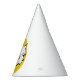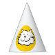 Chapéu de festa do tema de gatos. Sobre a questão dos gatos. Imagem de gato como decoração. Para amantes de gatos ou para quem gosta de gatos. Imagem de desenho animado em preto e amarelo.