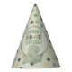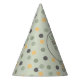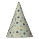 Tira a festa de aniversário com esses bonitos chapéus personalizados. Eles apresentam uma ilustração adorável de um dinossauro bebê em verde-claro e amarelo com sua própria mensagem de dino-ácaro acima de tudo, colocada sobre um fundo de bolinhas verdes, amarelas e cinzas.