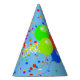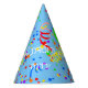 Que chapéu alegre de festas de papel! O fundo tem balão, fitas e confete. Você pode mudar o nome da criança de aniversário.