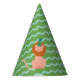Um chapéu verde brilhante e arrojado com listras de ondas azuis aqua e um leão de festa é uma adição divertida à celebração de aniversário do safari de qualquer criança.