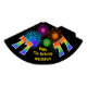 Este design de festa de aniversário de vibração e divertida apresenta um padrão de fogos de artifício celebratórios coloridos, inspirado no número "77", tendo um espectro multicolorido como o arco-íris ou padrão de gradiente. Ele também apresenta um nome personalizável e uma mensagem de evento, como uma saudação de aniversário de "Parabéns". Um artigo de aniversários como este pode ser vestido pelos participantes numa festa de aniversário em comemoração dos setenta e sete anos de alguém. [~Z0000333]