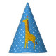 Um legal azul com uma festa pontilhada de polca branca que apresenta uma girafa amorosa de festa e é uma adição divertida à celebração de aniversário do safari de qualquer criança.