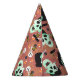 Comemoração assustadora com esse chapéu de festa Frankenstein! Apresentando uma mistura divertida de monstros verdes de menta, doces, crânios e teias em um fundo laranja-ferrugem, é perfeito para festas de aniversário de Halloween para crianças ou comemorações de fantasia. Divertido, festivo e assustadoramente fofo para o grande dia do seu monstro!