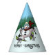 A funny skiing snowman on paper hats for your Christmas party. Use "Personalize this template" to change the "Merry Christmas!" text and make a unique, customized xmas accessory. The hats feature a cartoon of a cute snowman with a carrot nose, dashing downhill through the snow on skis, in woolly winter hat and tartan scarf. An upbeat image for the winter holidays.