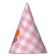 Personalize esses bonitos chapéus de festa com sua foto e suas cartas. O fundo bonito de verificação de búfalos cor-de-rosa e branco com flores cor-de-rosa, púrpura e laranja será um sucesso com a sua pequena.