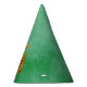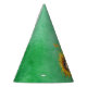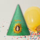 This paper party hat is vibrant green with a big yellow sunflower with the face of a cute brown haired girl in the center of the flower. Customise the Happy Birthday text with the templates.