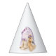 This girls purple and pink floral horse birthday party hat is perfect for a pony birthday party or cowgirl themed celebration. Featuring a soft watercolor horse design with purple florals and subtle pink hues, this party hat coordinates beautifully with matching invitations, plates, napkins, balloons, and decorations. Ideal for young horse lovers, it adds a fun and charming equestrian touch to any horse themed birthday party.