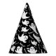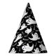 This party hat is shown in a black color with a Halloween ghost print.