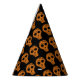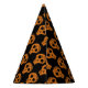 O padrão do crânio laranja e preto nos chapéus de festa do Halloween.